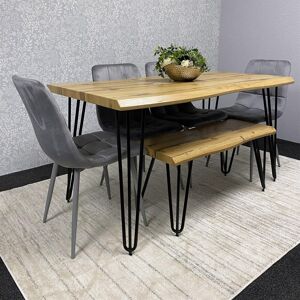 A stunning rectangular brown wooden dining table comes with 4 tufted velvet chairs. The dining table's curved wooden top - Adds a natural, rustic charm to your space. The set of 4 velvet chairs with tufted backs for timeless comfort. Table dimensions - 117cm (L) x 77cm (W) x 75cm (H) and offering ample space. Chair dimensions - H87 cm x L59 cm x W44 cm and the seat height of these chairs is 45 cm. The dining table is sleek and stable - metal hairpin legs provide excellent support with a modern touch. The chairs have floor protection - Rubber-capped legs prevent scratches while ensuring stability. Easy Assembly - Hassle-free setup with clear instructions included." Norden Home Chair Colour: Grey