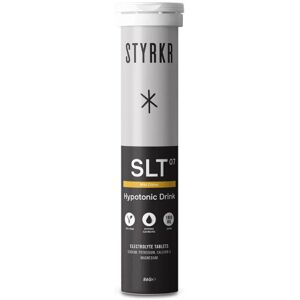 SLT07 is a super-convenient, highly effective rehydration tablet specifically designed for endurance athletes that delivers every time, under all intensities and environmental conditions. Specification: Highest single and adjustable serving hydration tablet on the market Perfectly mimics the ratio of electrolytes in human sweat with added sodium Ensures rapid rehydration and prevents muscle cramping Quick release and fastest absorbing formulation Developed by professional sports nutritionists and tested by athletes Allergen-Free, Gluten-free and 100% vegan. Made in the UK Features: Not just another salt: SLT07 is the highest single-serving, quad-blend electrolyte tablet on the market with 1000mg of sodium, 100mg potassium, 25mg magnesium and 15mg calcium per tablet. If you need powerful hydration fast, look no further. Your body, your dose: In hot conditions or during intense activity, people sweat differently. Use a whole effervescent tablet if you sweat a lot or are in the heat. If you sweat less or the conditions are mild, use half a tablet. Effervescence done right: STYRKR rehydration tablets are created by sports nutritionists and tested by athletes to ensure they work. Plus, all SLT07 ingredients are vegan, non-GMO, gluten-free, and responsibly sourced. Nutritional Value: Sodium: 1000 mg, 43.48% NRV Potassium: 100 mg, 2.86% NRV Magnesium: 25 mg, 6.66% NRV Calcium: 15 mg, 1.5% NRV