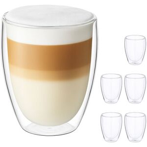 Enjoy your latte macchiato or other coffee specialties to the fullest with these elegant glass mugs. The double-walled design of the coffee glasses not only ensures that hot drinks stay warm longer but also that cold drinks remain cool. Thanks to the evenly tempered outer wall, you won't have to worry about burns on your fingers or condensation rings on your table. The optical floating effect gives the transparent double glasses an extra touch. Latte Macchiato Glass Set in Detail - Dimensions H x D: approx. 11 x 9 cm - Volume: approx. 350 ml - Weight: approx. 160 g - Material: Borosilicate glass - Colour: Transparent Double-Walled Glass Cups in a Set - Ideal for various hot and cold coffee specialities or tea - Double-walled design keeps drinks at their desired temperature for longer - No risk of burning your fingers with hot drinks - No unsightly condensation on the glass with cold beverages - Simple, transparent design - drink appears to float in the glass - Easy to clean in the