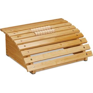 This footrest is the perfect accessory for your office or home office. Under your desk, the ergonomic footrest provides a more comfortable sitting position and a healthier working posture. This prevents painful tension in your neck or back. The rollers allow you to massage your foot reflex zones from time to time. This helps improve circulation and keeps you alert and focused. The sturdy footrest is made from natural bamboo. Footrest Desk in Detail - Overall dimensions H x W x D: approx. 16 x 40 x 32 cm - Castor dimensions each: approx. 12.5 x 2.5 cm - Weight: approx. 2.1 kg - Material: Bamboo - Colour: Natural Ergonomic Footrest with Castors - Perfect as an office accessory under the desk - For more comfortable sitting and a healthier working posture - With castors for foot reflexology massage in between work - Stimulating massage rollers promote blood circulation - Stay awake and focussed for productive work - Simple design made from easy-care, natural bamboo - Four non-slip feet
