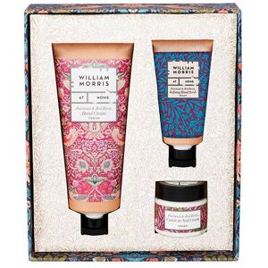 Introducing the William Morris Strawberry Thief Handcare Treat Set, a delightful trio designed to elevate your home hand care routine. This giftable set features a skin-polishing hand scrub, a luxurious hand cream, and a nourishing cuticle and nail cream. Packed with hero ingredients like protective strawberry seed extract and enriching oils of jojoba and macadamia, this set promises to rejuvenate and pamper your hands. Immerse yourself in a soothing fragrance experience, as the blend of grounding patchouli essential oil, tempting red berry, and warming cardamom notes creates a sense of wellbeing with every use. The hand and nail creams are carefully crafted with the power of strawberry seed extract, renowned for its skin-conditioning essential fatty acids, and antioxidant-rich orange extract, leaving your hands feeling irresistibly soft. What's more, our microbead-free hand scrub gently exfoliates your skin with almond shell powder for a polished finish. The outer box is entirely plastic-free. But that's not all. When you choose the William Morris at Home Handcare Treat Set, you're also contributing to a noble cause. This collaboration with the not-for-profit William Morris Gallery helps support the gallery's mission to preserve the legacy of William Morris, the renowned artist and environmental campaigner, for future generations. Included in the set: 100ml Hand Cream 50ml Hand Scrub 35ml Nail & Cuticle Cream Indulge in the perfect hand care ritual with the William Morris Strawberry Thief Handcare Treat Set – a harmonious blend of luxury, sustainability, and philanthropy for your everyday self-care needs.