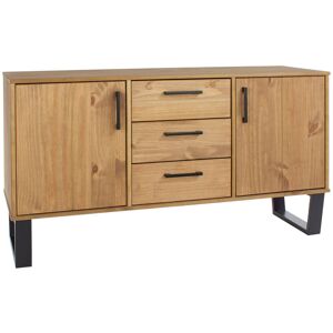 This industrial-styled modern design medium-sized sideboard is a great combination of drawer and cupboard space, our sideboard is finished in an antique wax with black pull handles and a metal underframe. The unit has lots of space with three drawers and two doors, which are ideal for storing all your cutlery, plates, and serving dishes. Ebern Designs Colour: Grey