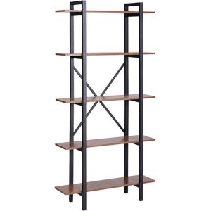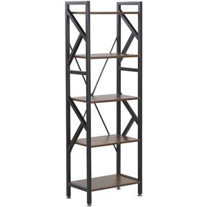 Etagere Bookcase. Featuring bold lines and mixed materials, this bookcase adds a strong character to any home décor with its geometric metalwork. The multi-tiered construction offers ample space for all your books, personal touches or framed pictures. Finished in dark wood laminate it makes a suitable addition to urban, rustic as well ad industrial inspired home décor. Details: Product Type: Bookshelf Style: Industrial General Color: Brown, Black Material Type: Engineered Wood Main Material: Chipboard Additional Material: Iron Legs material: Metal Shelves number: 5 Finish: Laminated Dimensions: Depth: 40 cm Width: 64 cm Height: 184 cm Weight: 23 kg Shelf Weight Capacity: 15 kg Top Weight Capacity: 15 kg Offer Includes: 1 x Bookcase Key Features: Can Serve as a Room Divider, Great for Industrial Interiors, High Quality, Ample Space for Storage, Uncomplicated and Self-Sufficient Assembly Assembly Information: Full Assembly Required. 20-40 min. Additional Information: Please note that
