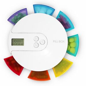 Product Description 1.Only installation, automatic ringtone on time every day. A loud sound alarm reminds you to take the pills daily. 2. Humanized anti-missing reminder – If you do not press any key to cancel when the bell rings for the first time, it will ring periodically a total of 3 times to remind people. 3. Rainbow design to 7 Slots - 7 large capacity compartments can store a week's worth of pills. With the stickers and different colors, you can clearly know Monday to Sunday for each location and easily mark the notice. 4. Each compartment is removable and has secure lids respectively, keeping dust and moisture away.