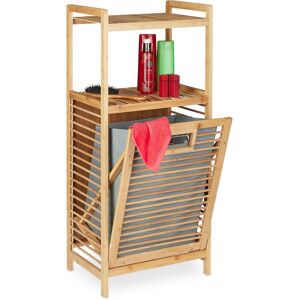This modern bamboo laundry bin with a sturdy frame can be used in many ways. Dirty laundry can be stored and sorted in the decorative laundry shelf with 2 pull-out fabric boxes. In the bedroom, the linen storage offers storage space for socks, underwear and much more. In the bathroom, on the other hand, there is room for bathroom accessories such as towels or washing utensils. The shelf space on the laundry sorter is ideal for decorations, plants or cosmetics. Laundry basket shelf in detail - Overall dimensions H x W x D: approx. 85 x 44 x 33 cm - Weight: approx. 3.3 kg - Material: Bamboo, Polyester - Colour: Natural, beige Bathroom shelf with laundry bin - Box top H x W x D: approx. 21 x 40.5 x 32.5 cm - Box bottom H x W x D: approx. 36.5 x 40.5 x 32.5 cm - Load capacity of shelf: approx. 2.5 kg - Load capacity basket top: approx. 5 kg - Load capacity of basket at bottom: approx. 10 kg Linen shelf with 2 pull-out compartments - Modern combination of bathroom shelf and laundry sorter