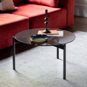 The contemporary coffee table is crafted from metal with a gold leaf finish, with a tray-style top and lower shelf. The stunning design features a continuation of one section of the base, up and over the table to create a ‘handle’ effect. A matching side table is available in the gold leaf finish, and both are also offered in a black finish. Gallery Direct