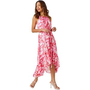 Halter Neck Butterfly Print Asymmetric Dress from Roman. Embrace the summer vibes with this butterfly print halter-neck midi dress. A sleeveless style made in a fluid chiffon fabric, this dress features a halter-neck and falls to a hi-lo frill floaty hemline. Wear with sandals for comfortable hot weather wear, or dress up with heels and sparkly jewellery for an extraordinary special event ensemble this spring-summer. Roman Women's Halter Neck Butterfly Print Asymmetric Dress in Pink Size: 18
