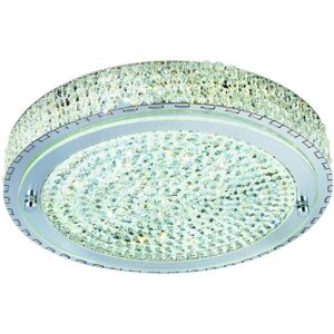 Specification Searchlight Flush - LED Round Flush Ceiling Light Chrome with Crystal Glass Centre Finish: Chrome IP Rating: IP20 Height (cm): 9 Diameter (cm): 30 Lamp Type: LED Kelvin: 4000 Lumens: 1245 Wattage (max): 20 Weight (kg): 2.7 Class: 1 (Earthed) Bulb Included: Yes Energy Efficiency: A Description offers a choice of elegant flush fittings to enhance the look of your room. The combination of chrome, crystal glass and mirror used in this collection allow the light to shine around the room with a clear glow, making the fittings extremely effective. The flush design of the fittings makes them ideal for a smaller room or a room with a lower ceiling. Furthermore, the range uses LED lamps, keeping maintenance costs and energy consumption down.