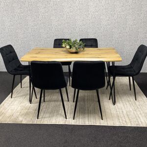 This beautiful dining table set features a stunning wooden beige oak design, offering a timeless and elegant look for your dining room. The set includes 6 tufted velvet grey Rocco chairs, each with a slightly curved back design for added comfort. The table's beige oak finish, paired with the stylish metal legs wrapped in a wood effect finish, adds both sophistication and warmth to your dining area. The high-quality MDF construction of the table ensures durability, while the premium velvet chairs with metal legs provide both style and comfort. A perfect blend of modern design and classic charm. Features: Beige oak wooden table with a stylish metal-wrapped wood effect finish. 6 tufted velvet grey Rocco chairs with slightly curved backs for comfort. Chairs made from premium velvet with metal legs for durability. Table constructed with high-quality MDF for a strong, long-lasting surface. Elegant and sophisticated design perfect for formal or casual dining. Easy assembly with clear instructions included. Norden Home