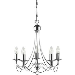 Specification Searchlight Maypole - 5 Light Multi Arm Ceiling Pendant Black, E14 Finish: Black IP Rating: IP20 Height (cm): 100 Diameter (cm): 46 No. of Lights: 5 Lamp Type: E14 Dimmable: Yes Wattage (max): 60 Weight (kg): 1.7 Class: 1 (Earthed) Bulb Included: No Description offers a choice of different sizes and finishes to allow you to choose the perfect fitting for your room; whatever the size and colour scheme. The traditional candelabra style of these fittings makes them ideal for a classic style dining room. The lamps are arranged in a way which allows the light to shine in all directions, creating a highly effective light fitting. This five light pendant is also available in eight light and three light pendants, as well as a matching wall light. All fittings are available black and antique brass finishes, and some are also available in satin silver.