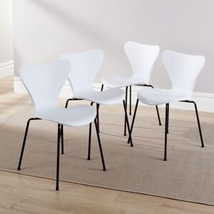 Funky and modern, this creative chair offers a flair for something a little different. With its curved wingback design and comfortable sitting position, this contemporary chair is perfect for your dining experience. There are four ultra slim tapered legs that are finished in quality black powder coating, for an industrial twist. The seat colour is available in white, navy and grey. Assembly is required to help keep the cost low. Home Source Set 4 Dining Chairs Curved Iron Tube Legs PP Seat Retro Diner Kitchen in White