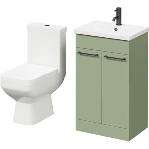 Model Number: WDB91604 Create a welcoming and stylish ambiance in your bathroom with the Turin Olive Green 500mm Floor Standing Vanity Unit and Toilet Suite with 1 Tap Hole Basin and 2 Doors with Matt Black Handles, a perfect storage solution for cloakrooms or small bathrooms. Featuring two cabinet doors, this olive-green vanity unit provides ample storage space while maintaining a compact 500mm size that seamlessly fits into smaller spaces. Crafted with moisture-resistant MFC and equipped with a white ceramic sink, this vanity unit suite guarantees durability and practicality. The smooth soft-close functionality and elegant matt black handles add a touch of sophistication, making your morning and evening routines a pleasure. For your convenience, the unit comes fully assembled, ensuring a hassle-free installation process. Elevate the look of your bathroom today with this vanity bathroom suite for a truly seamless and stylish finish. Key features High quality toilet with soft close