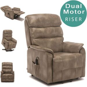 The Buckingham Riser Recliner Dual Motor takes this stately chair to a new level of nobility. A four-button controller enables you to independently move the soft foam padded backrest and footrest. This highly functional yet comfy regal power recliner is easy to use and perfect for those who find it hard to sit and stand comfortably. Covered in soft bonded leather, this chair will recline to an almost sleeping position. When you need to get up, one button will fold the footrest away and the chair will gently continue to rise until you're almost standing. The Buckingham also has a useful storage pocket for the controller and your TV remote. Available with a Single Motor or Dual Motor in three sumptuous shades, Stone, Tan and Brown. Dimensions: - Height: 101cm - Width: 88cm - Depth: 82cm - Seat Width: 47cm - Seat Height: 50cm - Seat Depth: 53cm - Backrest Height: 69cm - Backrest Width: 73cm - Recline Dimensions: W:88 D:165 H:66 More4Homes Buckingham Dual Motor Electric Rise Recliner Bonded Leather Chair in Stone