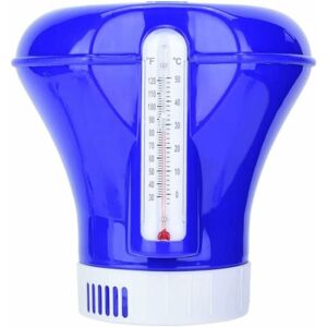 Description: Swimming pools are great fun during the summer, but they also need to be properly cleaned and maintained to keep them safe and sanitary all season long. Regular maintenance is tedious and time consuming, but it's easy to do with our floating chlorine dispenser with a built-in thermometer, so you can spend less time working and more time swimming. Features: < br/> - Color: White, Blue - Material: Plastic - Size 5INCH: height: 132mm, diameter: 125mm, bottom diameter: 45mm, suitable for 1- 5 Price.. 8inch: height: 183.5mm, diameter: 176mm, bottom diameter: 85mm, suitable for 3 shelves.. - Application: This dispenser works for floor standing pools, above ground pools and spas and comes with an adjustable chlorine outlet vent that can be set as desired. - Function: This floating chlorine dispenser is designed for use with tabs to provide a constant stream of chlorine in your pool or spa. - With thermometer: the built-in thermometer reads temperatures in ℉ and ℃. - Hassle free: