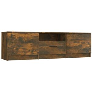 This sturdy TV cabinet is designed to be a focal point of your room with a trendy yet practical design. Sturdy material: The engineered wood is of exceptional quality with smooth surface and also features strength, stability and resistance to moisture. Made of engineered wood, the TV stand is easy to clean. Spacious storage: The TV unit has 4 compartments which make it an ideal place for storing all your magazines, DVDs and other items. Displaying function: The sturdy top of the media cabinet is ideal for displaying decorative items like photo frames and plants. Practical door: Keep your essentials free from dust by hiding them behind the doors of the media unit. Iron legs: The iron legs add a calm style to your interior while ensuring stability. Warning: In order to prevent overturning, this product must be used with the wall attachment device provided. Colour: Smoked oak Material: Engineered wood, iron Dimensions: 150 x 30 x 50 cm (W x D x H) Assembly required: Yes Legal Documents: