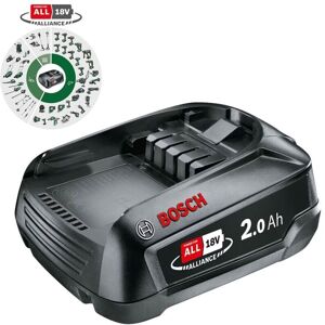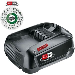 The Bosch Power4All 18v 1.5Ah Green Lithium-ion battery pack compatible with all members of the Bosch Power4All 18v cordless range of DIY & Garden tools. Pack of 2 Batteries Features Powerful lithium-ion battery which can be used in all tools in the Bosch Green ""Power4All"" 18v lithium-ion cordless system No memory effect. no self-discharge: always ready for use thanks to lithium-ion technology Particularly long life due to Bosch Electronic Cell Protection (ECP) ""Power4All"" is the cordless system with lithium-ion technology for an entire Bosch Green tool family in the house and garden: battery can be flexibly combined with charger and other tools in the Bosch Green 18 volt cordless family POWER FOR ALL: Compatible with numerous other tools from participating brands of the POWER FOR ALL ALLIANCE around your home and garden. This means that you no longer need to buy one battery for every product. You save money and stay flexible at all times! POWER MADE EASY: With its capacity of