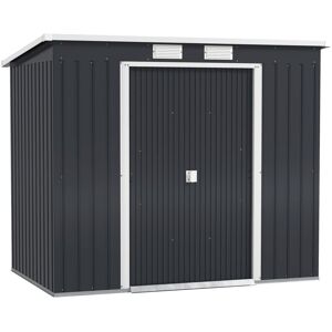 Save time for what matters – the new-style Outsunny metal shed with horizontal panels would definitely take the stress out of assembly. Tested and proven, a professional assembler can complete the setup in about 90 minutes - 30 minutes faster than assembling traditional vertical panel sheds. We anticipate that your family together will be able to complete the assembly in approximately three hours with electric drill and other tools.Features:Seven support columns with crossbeams and foundation kit for enhanced stabilityAll-weather galvanised steel frame for year-round protectionApex roof design prevents water and snow build-upVents ensure airflow, reducing condensation insideDouble sliding doors enhance easy entry and exitLatch and lock feature improves securityProtective gloves included, ensuring safe assembly