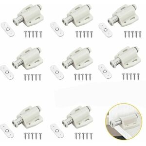 Magnetic Cabinet Door Knob: You will receive 8 magnetic locking springs and 32 stainless steel screws. Install push-pull furniture door locks to make your cabinet doors more simple and elegant! EASY TO USE: Magnetic door closers feature a built-in spring plunger to close or open cabinet doors with just one touch. This eliminates the need to install handles on the outside of the cabinet door. High-quality material: The magnetic cabinet door latch is made of ABS and stainless steel, which is not easily deformed, and the magnet piece is thickened, sturdy, and durable. Strong magnetic force: The built-in magnet magnetically presses the latch, which has good magnetic force and can extend for a long time after being pressed, keeping the cabinet door firmly closed. Versatile use: The kitchen door handle can be used on bookshelves, kitchen cabinets, drawers, shoe cabinets, wardrobes, and other furniture. Perfect for handleless cabinet doors and drawers in your home, RV, or elsewhere.
