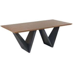 Industrial Dining Room Table. Make a statement by creating a bold, convenient dining space with this unique industrial table. The combination of dark wood veneer and black base made of bent metal, as well as the sharp angles and geometric design, make a perfect centrepiece for every home, giving it a touch of trendy, loft-inspired urban style. The whole construction provides excellent stability, thanks to its shape and high-quality materials and maintains its looks for years. Details: Product Type: Dining Table Style: Modern General Color: Brown, Black Material Type: Engineered Wood Main Material: MDF Additional Material: Metal Legs material: Metal Top Material: Engineered Wood Shape: Rectangular Finish: Laminated Seats Up To: 8 People Dimensions: Width: 100 cm Length: 200 cm Height: 75 cm Weight: 64 kg Weight Capacity: 200 kg Offer Includes: 1 x Table Key Features: Modern Design, Perfect Mix of Colours and Materials, Stable and Durable Construction, Solid Craftship, Easy Care and