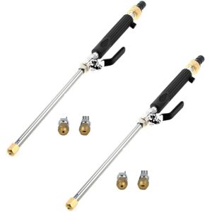 [Fan Nozzle and Jet Nozzle ]There are two different nozzles available to meet your home cleaning needs Use the fan nozzle on the water for wide-area watering, which is perfect for washing pets and watering plants The jet nozzle has stronger impact force, and the with the jet nozzle can easily solve dirty problems on wheels, rims and other areas that require high-pressure steam . [High Quality Material]This car wash nozzle is made of solid copper interfaces and metal wand, thickening switch,anti-slip handle As it's solid design and advanced materials resistant to rust, deformation, and rupture over time Well-made structure together with internal rubber o-ring provides a reinforced tight seal to eliminate leaks. You experience exceptional power, durability and outstanding performance. it can be used in multiple environments. Colour:Black Material:Aluminum Alloy Package Contents: 2 x Water 4 x nozzle Only the above package content, other products are not included. Note: Light reflection
