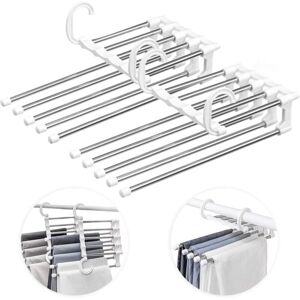 With this sturdy multi skirt hanger, you can get yourself a compact storage helper for your closet. The space saver features 5 hangers that can be removed individually. This way, you can always have your favourite jeans in reach. The rails are covered in black PVC to assure that your clothes do not slip - Handy! You’ll get this multi hanger in a handy set of 3, so you can keep up to 15 pants and skirts free of creases and wrinkles. Multi Pants Hanger Details - Total size H x W x D: app. 52 x 33.5 x 2 cm - H x W per hanger: app. 6 x 33.5 cm - Weight: app. 530 g - Capacity: 8 kg - Material: Iron, PVC - Colour: Silver, black Multiple Coat Hanger - 3 Holders with 15 hangers each for compact storage - Hangers for pants, skirts & accessories - Removable hangers for easy storage - Non-slip PVC rail - Sturdy & durable metal multi hanger Included in Delivery - 15 x Trouser Hanger - 3 x Holder - Decorative items shown are not included