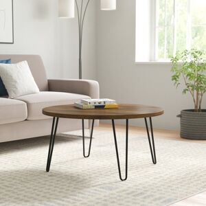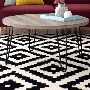 Add a fun retro look to your living room with the coffee table. Crafted with a mid-century design, the black hairpin-style legs offer an industrial feel while the weathered oak or walnut finish of the round table top adds a rustic touch that can go with any style. The large tabletop offers plenty of space to place books, magazines, remotes, and decorations. Made from laminated particle board, the table requires minimal assembly. Two adults are recommended for assembly. Hykkon Colour: Weathered Oak