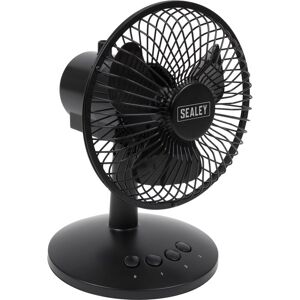 Sealey 3-Speed Oscillating USB Desk Fan 6" Features: Manufactured from composite materials with a steel fan guard. Oscillation control switch and pivot head allow the user to control how the airflow is distributed. Brushless fan motor keeps the fan quiet, making it ideal for office environments. 3-Speed settings. Supplied with a USB cable for powering via a laptop or mobile power bank, alternatively can be powered by 3 x AA batteries (not included) making it perfect as a portable fan. Technical Details: • Manufactured from composite materials with a steel fan guard. • Oscillation control switch and pivot head allow the user to control how the airflow is distributed. • Brushless motor keeps the fan quiet, making it ideal for office environments. • 3-Speed settings. • Supplied with a USB cable for powering by laptop or mobile power bank, alternatively can be powered by 3 x AA batteries (not included). • Model No. SFF6USB • Model No. SFF6USB Additional Information: • Manufactured from