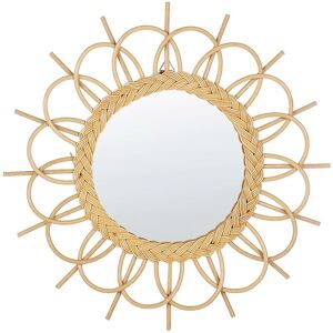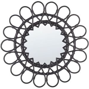 Natural Rattan Mirror with Braid and Sunburst Design. Draw attention to your home decor with this stylish, sunburst mirror. The piece is made out of durable, natural rattan, and as every piece is handmade, you can be sure your mirror will be unique. The inner part of the frame also features beautiful braid pattern, which enhances the overall design and adds to a boho vibe of the product. Details: Product Type: Wall Mirror Style: Boho General Color: Black Material Type: Rattan Main Material: Rattan Additional Material: Glass Shape: Round Finish: Lacquered Dimensions: Depth: 3 cm Width: 60 cm Height: 60 cm Weight: 1 kg Offer Includes: 1 x Mirror Key Features: With Hooks on the Back for Hanging on the Wall, Perfect for Both a Bedroom and a Living Room, Decorative Yet Functional, Unique Handmade Piece, Easy Care and Durable Materials Assembly Information: Does Not Require Assembly Additional Information: Please note that every product is handmade, so there might be differences in texture