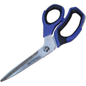 Faithfull Heavy-Duty Scissors feature stainless steel blades with iron carbide cutting edges for superior durability. Iron carbide cutting edges stay sharper for longer than traditional stainless steel edges. Bolt lock technology keeps the blades from loosening and ensures a precise cutting action. An all-metal core adds extra strength and prevents handle breakage if the scissors are dropped. Fitted with dual-compound soft grip handles with large handle loops, which allow use whilst wearing gloves. There is also an index finger groove for increased comfort. Ideal for many cutting tasks around the house and workshop.1 x Faithfull Heavy-Duty Scissors 250mm (10in)Additional Information:• Sissor Type: Heavy-Duty• Overall Length (mm): 250