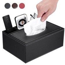 LEATHER TISSUE BOX COVER: The standard and square tissue box cover is perfect for home or commercial use; it is an ideal solution for hiding unsightly tissue boxes. Add a natural and whimsical addition to a colorful interior decor. MATERIALS: Our tissue box covers are made of PU leather. With fine workmanship and excellent craftsmanship, it feels comfortable and soft in the hand and does not tear easily. Easy to clean, can be easily cleaned with a damp cloth. EASY TO REFILL: Just open the magic adhesive strip at the bottom, you can easily replace it with a new tissue, very convenient to use. Simple, elegant, and lightweight design, leather tissue covers are an indispensable part of your home. CONVENIENT STORAGE: When not in use, the tissue cover can be folded and stored without taking up too much space. It can also return to its original shape effortlessly. Perfect size to hold most standard-sized square tissue boxes. ADD A DECORATIVE TOUCH TO YOUR HOME: This imaginative take on the