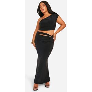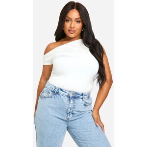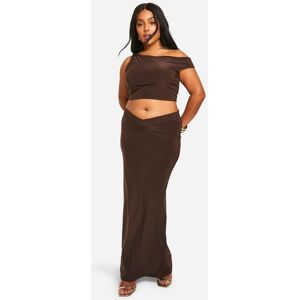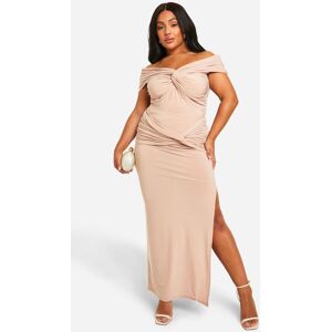 Boohoo Womens Plus Double Slinky Twist Front Off Shoulder Top - Mocha - Size 24 Uk