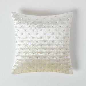 Brand Homescapes Size Available 55 x 55 cm Colour Cream Cover Material 60% viscose 40% polyester Care Instructions Machine washable at 30 degrees Pack Includes One cushion cover On-trend crushed velvet cushion cover with hand stitched embroidered crosses for added texture. Add a burst of colour to your living room or bedroom, this vintage style cushion cover is woven from super soft crushed velvet and features a plain reverse, making it easy to style. Choose from three sizes including 30 x 50 cm, 40 x 40 cm or 55 x 55 cm. Perfect for layering up on your sofa and bed, or use alone on an armchair for added comfort. In off-white, this velvet cushion cover will complement every interiors style, and works well when paired with the midnight blue or blush pink colour. To create a cushion that feels comfortable and supportive, pair with one of Homescapes� cushion inserts (sold separately) available in a choice of natural or synthetic fillings. The cover has a zip closure on the reverse side