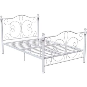 Introducing our elegant Chicago Metal Bed Frame, a perfect blend of sophistication and durability designed to enhance any bedroom decor. This beautifully crafted bed frame features an open frame design that adds a touch of elegance and creates a sense of spaciousness in your room. The bed frame is equipped with sturdy metal slats, providing strong support for your mattress and ensuring long-lasting comfort and durability. The open frame design not only enhances the aesthetic appeal but also allows for better airflow, keeping your mattress fresh and comfortable. Adding a touch of luxury, the bed frame is adorned with crystal finials on each post. These sparkling accents catch the light beautifully, creating a glamorous and refined look that complements any decor style. Constructed from high-quality metal, this bed frame offers enhanced stability and robustness, ensuring a secure and comfortable sleeping experience. Its sleek and sophisticated design makes it a standout piece in any