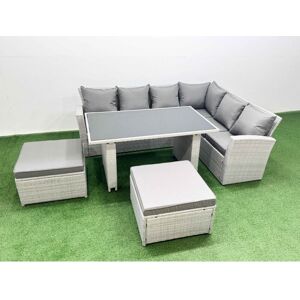 This classic corner sofa can accommodate 8 peoples and has a comfortable and soft cushion back, made of new premium dark grey rattan that will withstand British weather. Pls kindly leave your mobile number at checkout for not delaying your shipment . Set dimensions: •1 x 3 Seater sofa with two arm : 170L x 69W x 79H cm •1 x 3 Seater sofa with single arm: 160L x 69W x 79H cm •1 x Oblong Black Tempered Glass Dining Table : 140L x 80W x 70H cm •2 x Big Footstool :65L x 65W x 34H cm Light Grey Mixed rattan with dark grey fabric .Color may vary due to light or monitor .we are unable to return the item due to this problem .Please consult before purchase if you have requirment on color saturation. Items Comes Flat Packed And Easy to Assemble,Sturdy Galvanized Steel Tube Metal Frames With Powder Coating To Prevent Rust.Ergonomic High Back And Declining Design For Extra Comfort. Flat PE Rattan Completely Made By Hand, 5mm Thick transparent Tempered Glass With Sucker On Surface To Prevent