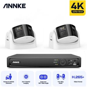 Caratteristiche principali: ★ Caméra réseau à tourelle fixe panoramique 4K 180° ★ Une image qui présente toutes les scènes capturées par la caméra ★ Technologie de compression H.265+ efficace ★ Images nettes même en contre-jour grâce à la technologie WDR 120 dB ★ Focus sur la classification des humains et des véhicules basée sur le deep learning ★ Alarme audio pour avertir les intrus ★ Lumière blanche jusqu'à 20 m, lumière IR jusqu'à 30 m ★ Résistant à l'eau et à la poussière (IP66) ★ Prise en charge du stockage TF de 256 Go ★ Audio bidirectionnel 【 Vue plus large à 180° avec une clarté de 8 MP 】 Cette caméra de sécurité à double objectif combine deux capteurs BSI 1/2,5" en UN seul flux époustouflant à 180° sans aucune distorsion ! Adieu les caméras classiques avec des vues à 90° avec une clarté de 1080p ; car c'est le choix idéal pour votre maison ou votre entreprise ! 【 Vision nocturne couleur, aussi vibrante que le jour 】 Equipée de 2 spots, cette caméra donne vie aux nuits en noir