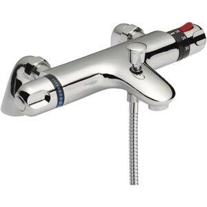 Chrome Thermostatic Deck Mounted Bath Shower Mixer Bar Valve Tap Combining high quality manufacturing and design, this thermostatic bath shower mixer is a reliable and functional tap. The thermostatic tap has anti-scald technology to prevent temperature fluctuation and scalding in the event of cold water shutdown. Manufactured from high quality brass in a Chrome finish. With coloured details on the handles to denote flow and temperature control. Shower kit not included. With ceramic disc technology for a longer tap life, and a smoother operation. Product Highlights STYLE: This Bath shower mixer bar valve tap will add a touch of class to any bathroom design. QUALITY MATERIALS – Made from high-grade brass internals, engineered to our highest standards for durability and longevity. FINISH: The Chrome finish will enhances your bathroom with a refined, high-end appearance. FUNCTIONAL: Designed for practicality, the knob handles offer precise control over water flow and temperature, while