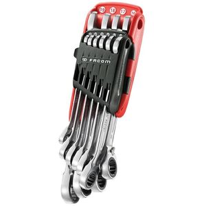 Expert by Facom: Metric Combination Ratchet Spanner, Fixed Head, 15mm Possessing one open end and one ring end, these fixed head ratchet spanners are designed for multi-purpose loosening and tightening of fasteners. Manufactured from chrome vanadium steel with a high chrome finish, the product is available in various sizes to suit your requirements. Features and Benefits 5 increments allows you to turn fasteners even in confined spaces 12-point OGV ring angled at 15 Open end angled at 15 from the handle axis (increment angle 30) Wide spanner handle enables the user to apply high power comfortably without hurting the hand Handle is dimpled to bolster grip and control even if you have oily hands Manufactured from polished Chrome Vanadium Alloy Steel for superior strength and durability, with a high chrome finish Typical Applications Automotive Plumbing DIY Construction Standards ISO 691 ISO 1711-1 MPN: E113307 EAN: Metric Combination Ratchet Spanner, Fixed Head, 15mm Attributes: Head