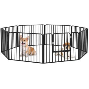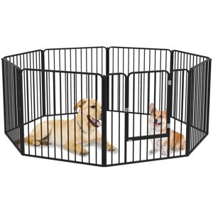 Feature: Eight steel panels quickly reshape as rectangles, squares or other shapes Nine ground stakes securely anchor any configuration Freestanding or mounted, you can use it in rooms or gardens Steel pipes offer strong construction Suitable for indoors and outdoors. When using indoors, place a pad at the bottom Suitable for large dogs up to 60cm in shoulder height Easy assembly required Specification: Colour: Black Material: Steel Overall dimensions: Square: 100H x 164L x 164Wcm. Single panel: 100H x 80Wcm. Door: 78H x 40Wcm. Bar spacing: 5.5cm Item label: D06-203V01BK 8 x Panel 9 x Ground Stake 1 x Pet Playpen 1 x Manual