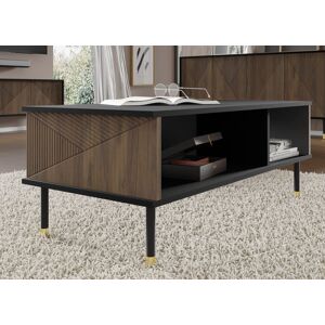 The woody coffee table features open compartments, providing ample storage space for your favourite books, magazines, accessories, and more. This thoughtful design not only enhances the functionality of the table but also keeps your living area organized and clutter-free. Elevated by elegant gold-coloured feet, the Woody Coffee Table adds a touch of refined luxury to any room. The contrasting black legs further accentuate its sleek profile, creating a visually striking piece that complements various decor styles. The detailed wood grain texture of the oak catania finish enhances the table's aesthetic appeal, making it a captivating addition to any discerning homeowner's collection. The woody coffee table 110cm is more than just a piece of furniture; it's a statement of style and practicality designed to elevate the comfort and elegance of your home. Whether hosting a gathering or enjoying a quiet evening, this coffee table offers the perfect blend of functionality and contemporary design, making it an indispensable addition to any modern living space. Fairmont Park