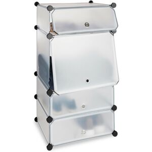 Having many shoes, as blissful as it may be, unfortunately brings about issues in smaller apartments. This modular shoe rack provides an ideal solution for that problem and can take up to 8 pairs of shoes. The compartments are of different heights and can easily accommodate boots as well. You may use this modular system as an open shelf or closed cabinet while still keeping an overview through the transparent doors. Thanks to the easy-care plastic surface, you can easily clean the cabinet with a wet cloth. Shoe Rack with 4 Compartments Details - H x W x D: app. 91 x 49 x 36.5 cm - Size of large compartment: H x W x D: app. 35 x 45 x 35 cm - Size per small compartment: H x W x D: app. 17 x 45 x 35 cm - Weight: app. 3.5 kg - Each compartment has a capacity of app. 3.5 kg - Material: Plastic, metal - Various colours available Parts Included - 6 Panels app. 45 x 35 cm each - 1 Door app. 45 x 35 cm - 2 Panels app. 35 x 35 cm each - 6 Panels app. 35 x 17 cm each - 3 Panels app. 45 x 17 cm