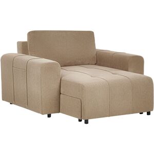 Reclining Living Room Chaise. A versatile chaise lounge featuring a gently curved silhouette and rubberwood tapered legs. Constructed with a reclining feature that allows you to easily turn it into a single bed. The thickly padded seat is tailored in soft-to-the-touch fabric upholstery that boasts decorative stitching. Stability of the product is ensured with durable rubberwood legs. With its modern appearance, this chaise lounge fits well with an array of décors making a trendy addition to any room. Details: Product Type: Module Element Style: Retro General Color: Beige, Brown Shade: Light Beige Material Type: Fabric Main Material: Fabric Additional Material: Rubberwood Filling Material: Foam Material Composition: 100% Polyester Arm Style: Armless Orientation: Symmetrical Pattern: Solid Seat Construction: Sinuous Springs Seat Foam Density: 24 kg/m3 Sofa Bed Open Mechanism: Click-Clack Dimensions: Depth: 161-178 cm cm Seat Thickness: 25 cm Seat Height: 41 cm Width: 75 cm Height: 41-80