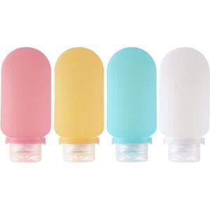 【Super Value Travel Bottle Set】These travel containers for toiletries contain 4 packs of 90ml bottles that you can fill 4 kinds of toiletries like cleanser and shampoo. But it also can be used to fill salad or ketchup as a kitchen packaging bottle. You can fill anything you want. 【Portable Travel Size】The 90ml silicone travel bottles are super portable, you can put them in your bag easily, save space to carry more you need and you will check in quickly with them. It is a must-have for you. 【Leak-proof Design】The leak-proof design in which the lotion will only flow out when the bottle cap is opened and pressed on the bottle, because we have a built-in cap. No more worrying about the embarrassment of liquid leaking in your bag. 【Wide Mouth】These silicone travel toiletry bottles are designed with a wide mouth, easy to fill shampoo, conditioner, shower gel, lotion and other items. The opening is wide enough for easy filling, use and cleaning. 【With a storage bag】All travel bottles are
