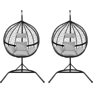 Experience the ultimate in relaxation with these stylish and durable black hanging egg chairs, designed to bring comfort and elegance to your indoor or outdoor space. Crafted from high-quality black PE rattan with a robust powder-coated steel frame, these chairs offer a perfect blend of strength and sophistication. Whether placed in a cosy corner of your living room or as a standout feature in your garden, these hanging chairs provide a serene retreat where you can unwind in style. Built for lasting durability, the black PE rattan frame is 20mm thick, reinforced with 3.9mm rattan wire, ensuring resilience against daily use and the elements. The sturdy metal frame supports up to 150kg, making it a reliable choice for individuals seeking comfort and stability. The chairs come with luxuriously thick polyester cushions providing exceptional comfort. These cushions are not only fire-resistant for added safety but also feature removable and washable covers, ensuring effortless maintenance.
