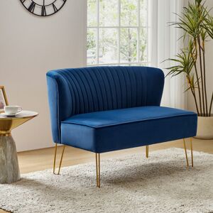This sofa elevates your living space with luxe materials and a chic silhouette. It's crafted with a solid and engineered wood frame and rests on metal, hairpin legs in a golden finish. Wrapped in velvet upholstery in the colour of your choice, its foam-filled and sinuous spring cushions offer extra support. This sofa features a sleek, armless design and a channel-tufted back for a glam feel. Sized to be space-conscious, it's just right for a smaller family room or bedroom reading nook. Blue Elephant Upholstery Colour: Pink