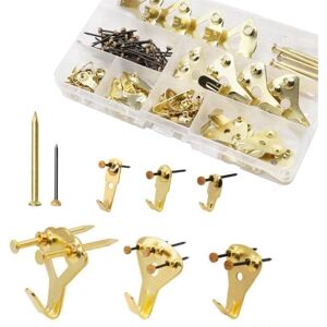 [Heavy Duty Picture Hangers]: The picture hanging kit is made of high-quality steel, strong and , with a long service life. It can hold 10-100 pounds and easily hang photos, decorations, clocks, clothes, kitchenware, small ledges, canvas. [Multiple Sizes Picture Hanging Kit]: The picture hanging kit includes a variety of accessories,Includes 10lb, 20lb, 30lb, 50lb, 75lb, and 100lb photo hangers, each with a total of 120 pieces, which can meet your different needs from small pictures to heavier paintings. [Easy to Use]: The picture hanging kit is easy to use and does not require any special tools. It can be completed quickly and easily, saving you time and effort. [Wide Application]: Nails for hanging pictures are pointed nails which make a very small pin size hole in wall - perfect for picture frames, canvases, kitchen utensils, wall clock, decorations, framed photos, bulletin boards, etc. Suitable for using on drywall, plasterboard, wood and fencing. Tips:The product may be updated