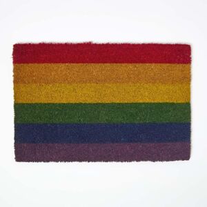 Specifications : Brand : Homescapes Colour : Multi Size : 40 x 60 cm Material : 100% Coir, with 100% Rubber backing Care Instructions : Shake out, brush off or vacuum dried dirt regularly. Show off your rainbow identity with this coir doormat flag. Non-Slip Rainbow Door Mat Upgrade the entrance to your home with this high-quality coir doormat. With a colourful design stretching to all 4 corners, this rainbow doormat will elevate a practical item to look like mere decoration. This colourful doormat has been meticulously crafted from durable coir to keep your floors clean from dirt, and has a rubber backing to prevent it slipping. Colourful Door Mats to Use Inside or Outside Ideal for both indoor and outdoor use, this 40 x 60 cm non-slip mat will complement any doorstep or entryway. Welcome guests into your home with pride in your decor, your clean floors, and your identity. Combine with a Homescapes artificial plant to make your guests feel an instant homely warmth. To care for your