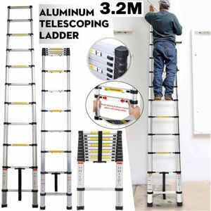 3.2m (10.5ft) telescopic style climb ladder: Extendable design, convenient to use and easy to carry around Great helper for both indoor household use and outdoor activities Safe and compact----black anti-slip rubber sleeve on the bottom of ladder step and multiple rubbers between two neighboring steps to avoid bumping and friction Locking levels with locking mechanism Approved by European Safety Standard EN131 Specification: Number of Ladder Step: 11 Step Interval: 27.5cm/10.8inch Max. Load: 150kg/330lb G.W.:9.2kg/20.3lb Material: premium aluminum alloy Color: just as the pictures show 3.2m/10.5ft (extendable height) Package Size: 82cm x 49cm x 8.5cm Package included: 1 x Telescopic Ladder 1 x instruction