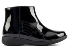 Clarks combine traditional craftsmanship with modern sensibilities. These girls Etch Pure K black leather loafers are a timeless silhouette perfect for Back to School. • Breathable Black Patent Upper• Riptape Strap• Foam Footbed• Microban Odour Control Lining• Flex-Grooved, Non-Marking Grippy Rubber Sole