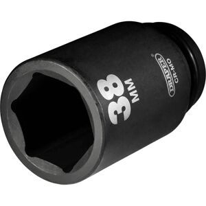 Description générale This is a 38mm (3/4 inch) square drive deep impact socket designed for heavy-duty use. It is forged from hardened chrome molybdenum steel for durability and strength. The socket features a black phosphate finish that provides corrosion resistance. It is suitable for use with electric or pneumatic impact wrenches, making it ideal for demanding DIY and home improvement tasks. Spécifications techniques Size: 38mm (3/4 inch) Drive type: Square drive, 3/4 inch Type: Deep impact socket Material: Hardened chrome molybdenum steel Finish: Black phosphate for corrosion protection Compatibilité et accessoires Compatible with electric and pneumatic impact wrenches with a 3/4 inch drive Supplied with a ring and pin for secure attachment Installation Always use the included ring and pin to secure the socket to the impact wrench's output shaft Utilisation Designed for heavy-duty impact applications Suitable for loosening or tightening large nuts and bolts Autres informations