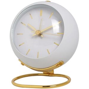 [,Satisfactory design]The golden steel ring design and the round shape of the clock face make every side of the Retro alarm clock very beautiful. Simple and generous tones bring a high-end and elegant atmosphere to the home. This is a great gift option and fun bedroom living room decor. Powered by 1 X AA battery (Not included). [Easy to read]Gold bronzing technology and Arabic bold font make numbers bigger and clearer and easier to read.Alarm clock height 4.3 inch,Operates on a accurate quartz silent movement; Energy saving and environmental protection. [No ticking sound]Ordinary time rotation is not any sound, and does not affect sleep. Equipped with loud alarm sound, can be freely opened and closed.Small clock that is very suitable for carrying during travel [Night light function]Wake up in the middle of the night and want to see the time. the white button on the back. The screen have night light function to facilitate you to view the time. When you don't it at ordinary times, the